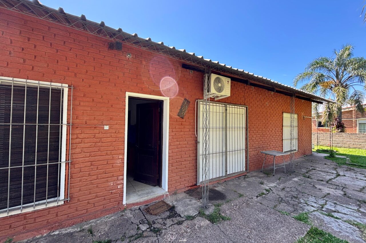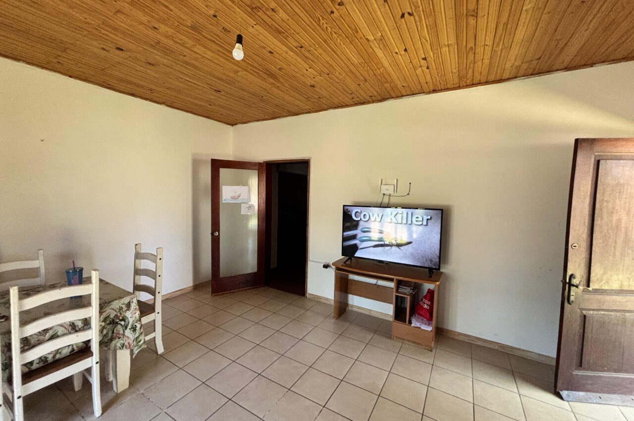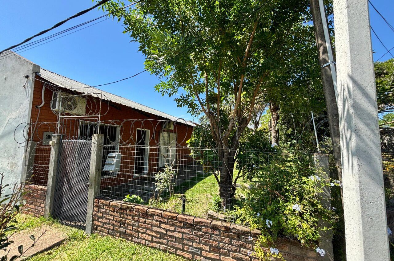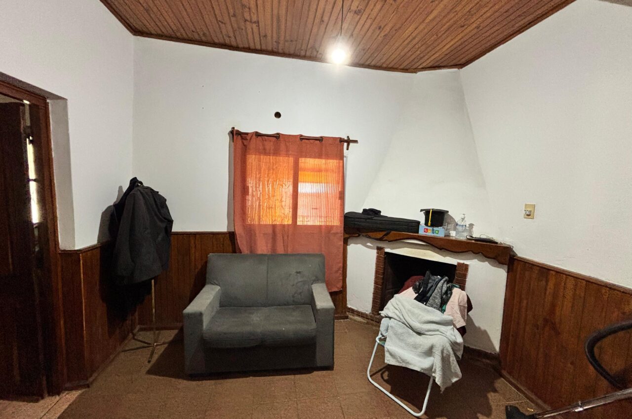 Casa de 3 dormitorios, living, estar con estufa a leña, cocina, baño y patio.