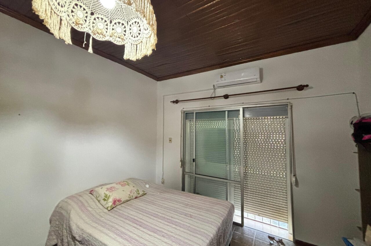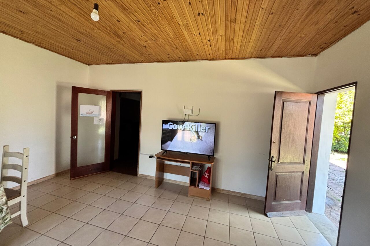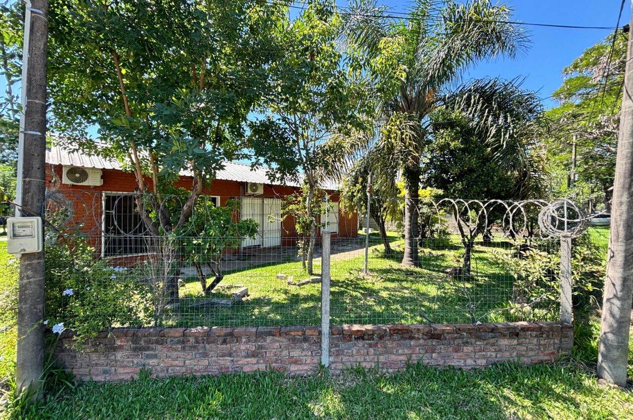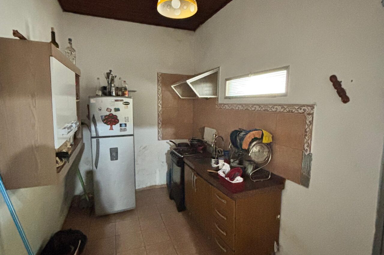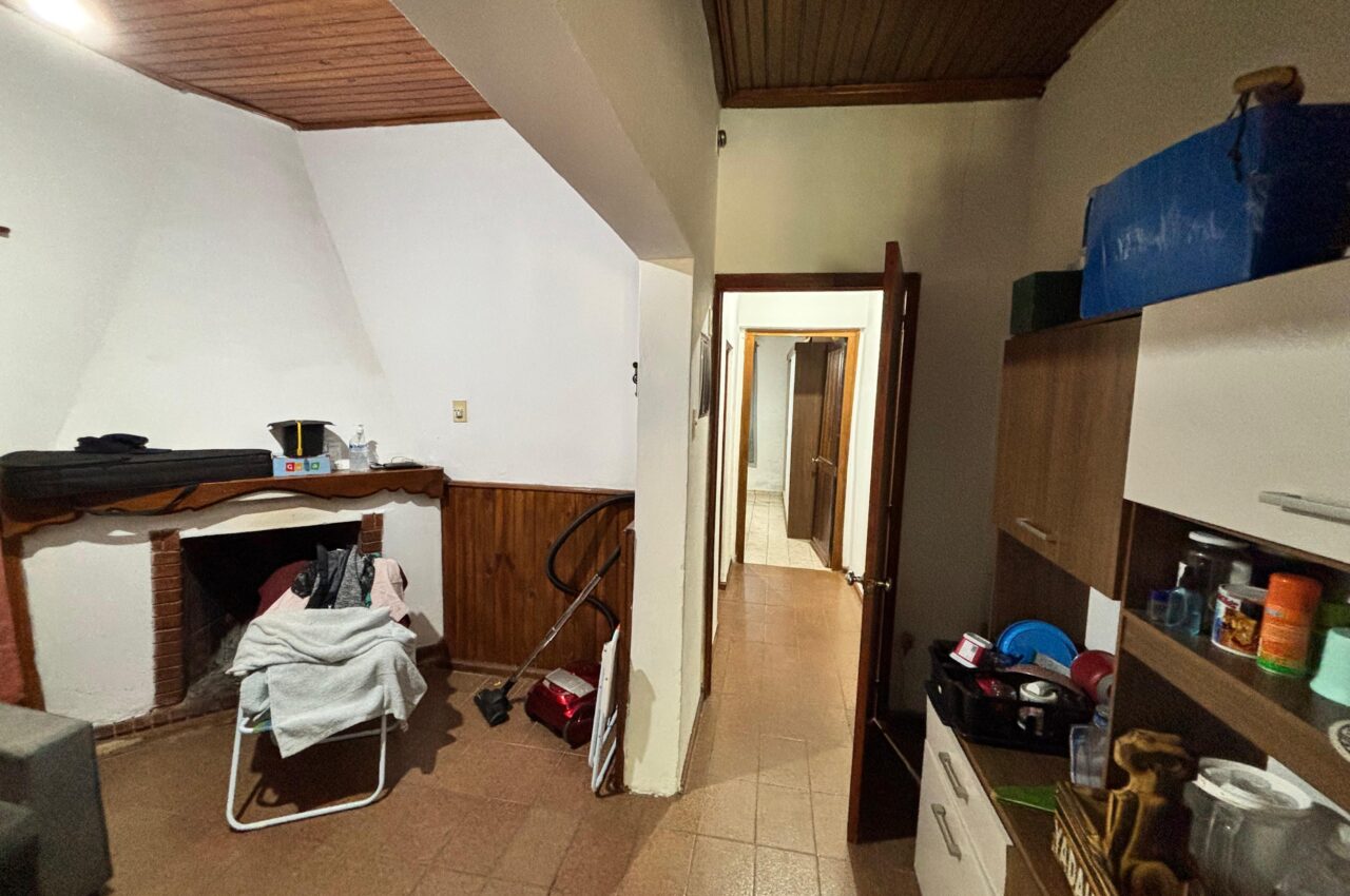 Casa de 3 dormitorios, living, estar con estufa a leña, cocina, baño y patio.