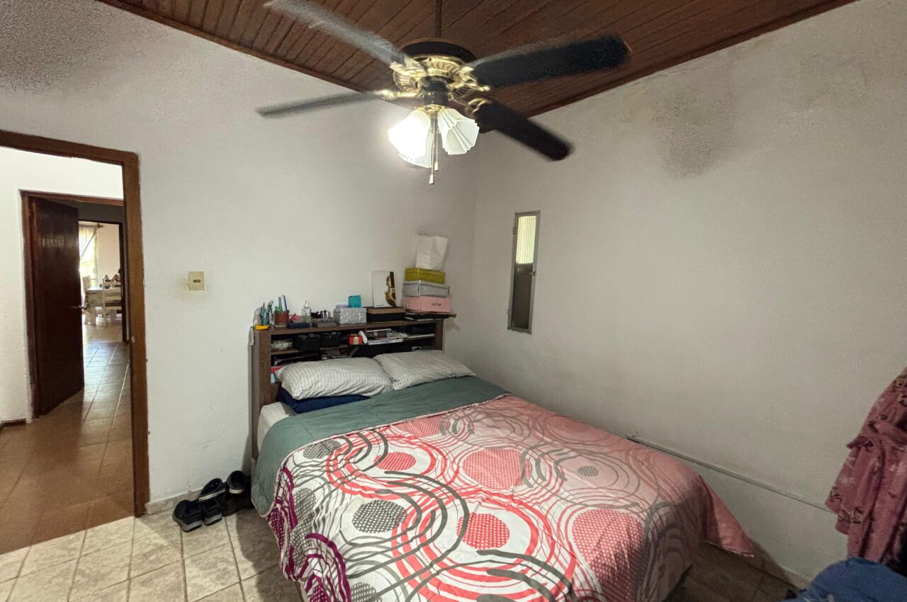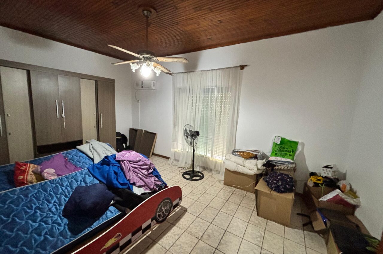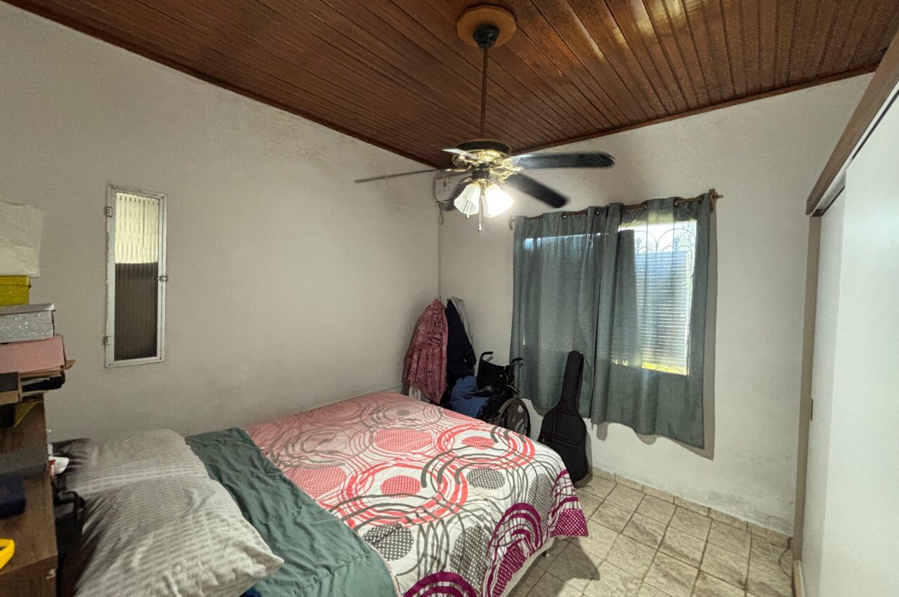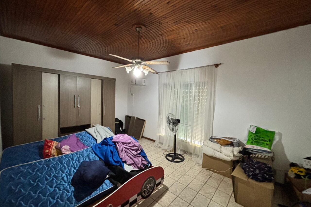 Casa de 3 dormitorios, living, estar con estufa a leña, cocina, baño y patio.