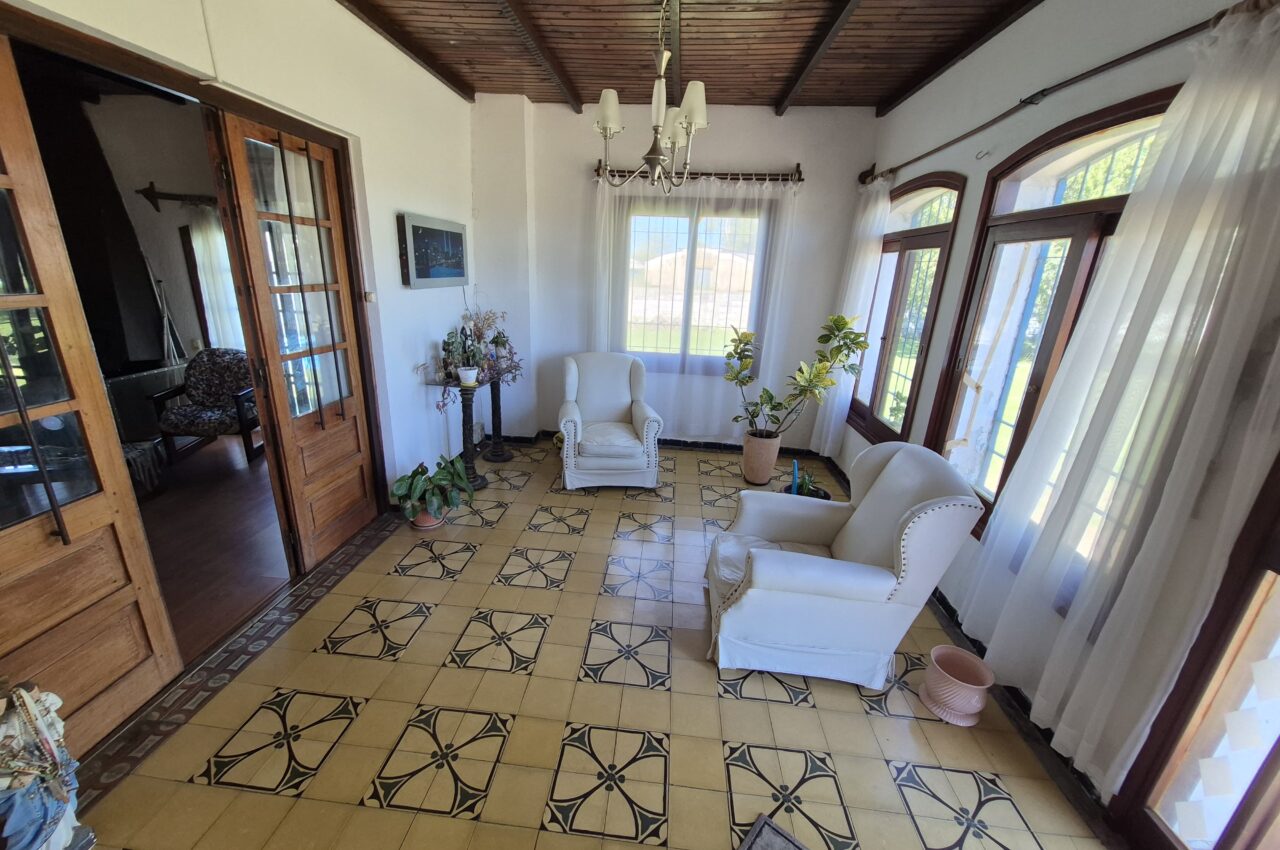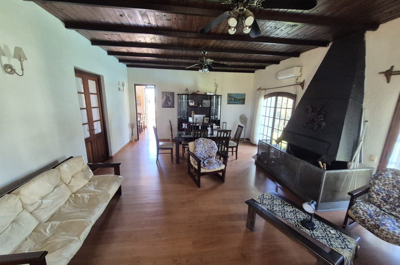 Casa de 3 dormitorios, 1 en suite, recibidor, living-comedor con estufa a leña, comedor diario, cocina, baño y sótano con depósitos. Barbacoa cerrada con baño y garage. Piscina c/baño de servicio y pozo semisurgente.
