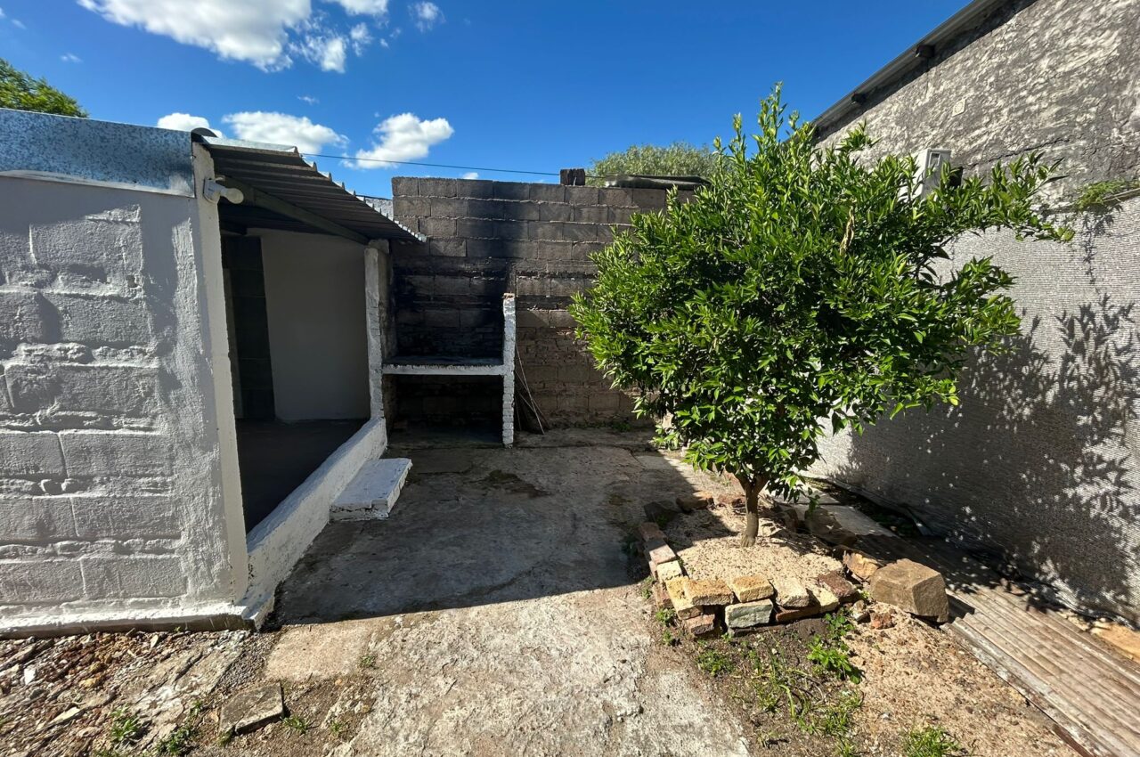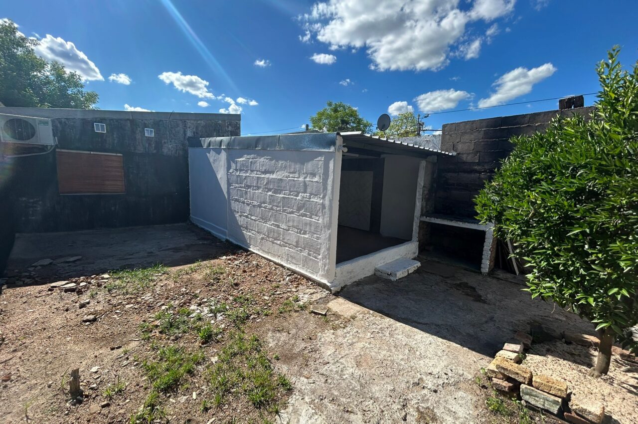 Casa de 2 dormitorios, comedor, cocina, baño, patio techado y fondo.