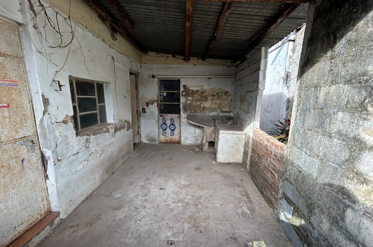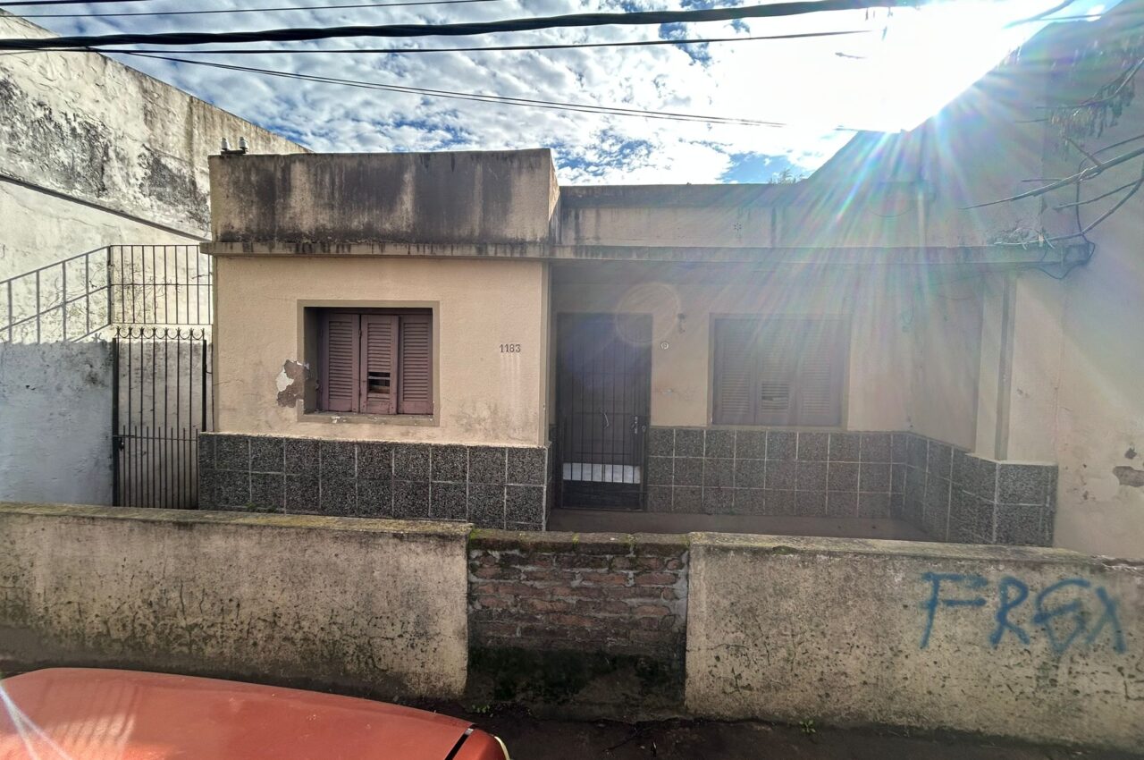 Casa de 3 o 4 dormitorios, living, cocina-comedor, baño, pieza, entrada lateral peatonal, patio con galpón.