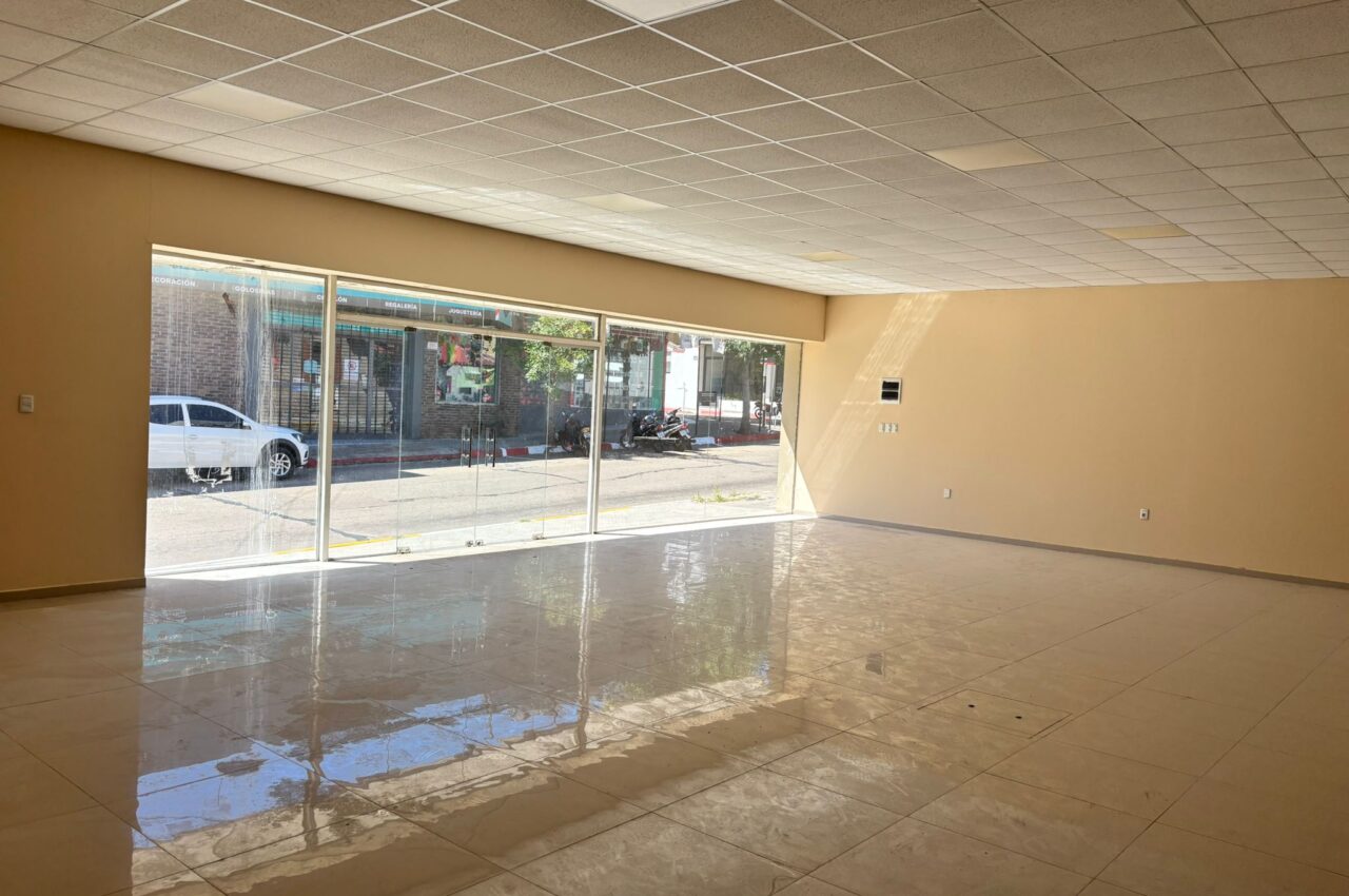 Amplio local comercial con baño, kitchenette, oficina y depósito en subsuelo.